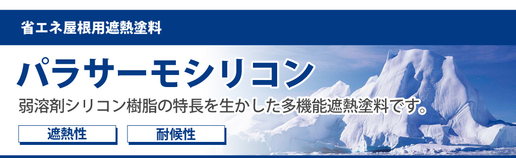 「パラサーモシリコン」は高耐候性シリコン樹脂を採用することにより、そのパラサーモシリーズの遮熱性機能に加え、耐候性、光沢性を高めた塗料です。