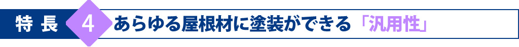 また、弱溶剤系のため、下地調整剤(プライマー)などを替えることで、あらゆる屋根材に塗装が可能。優れた遮熱性能と高耐久性、そして、大幅な拡張性をもった画期的な多機能塗り替え遮熱塗料です。 |