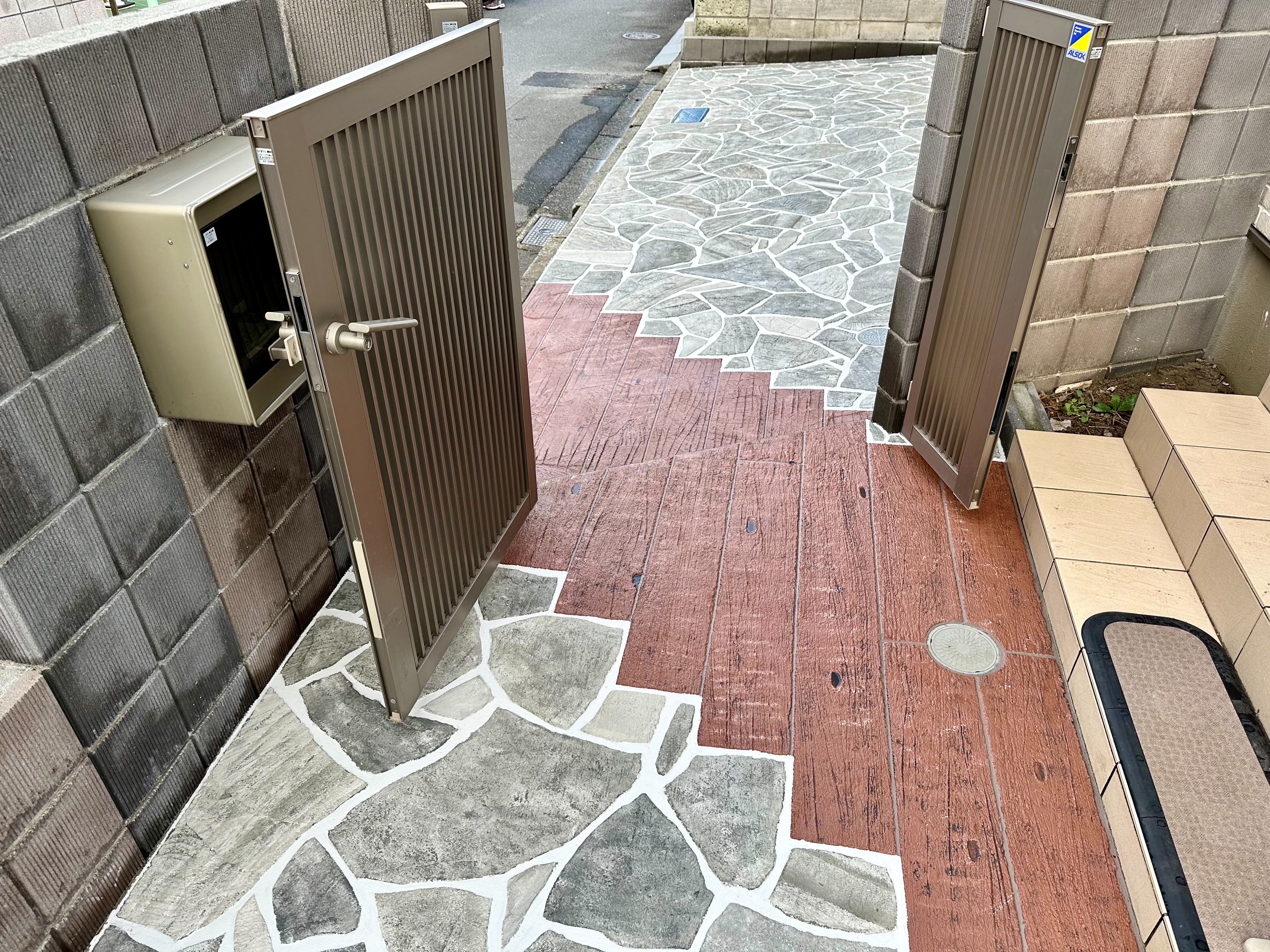 - 石色→乱貼り・・・カスタムグレー 枕木調・・・カスタムブラウン
