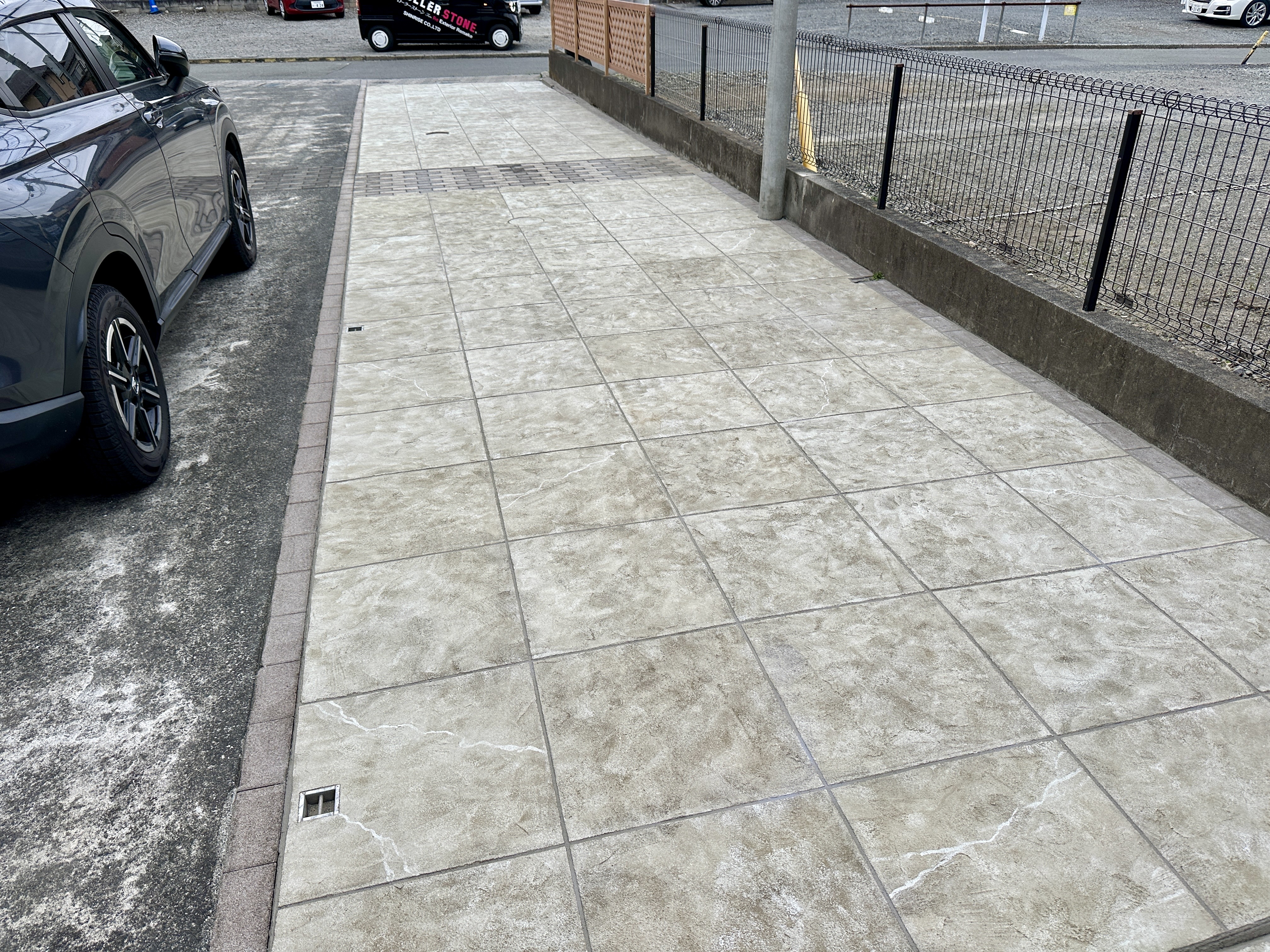 こちらが、正方形タイル調のローラーストーン造形打設後の写真です。