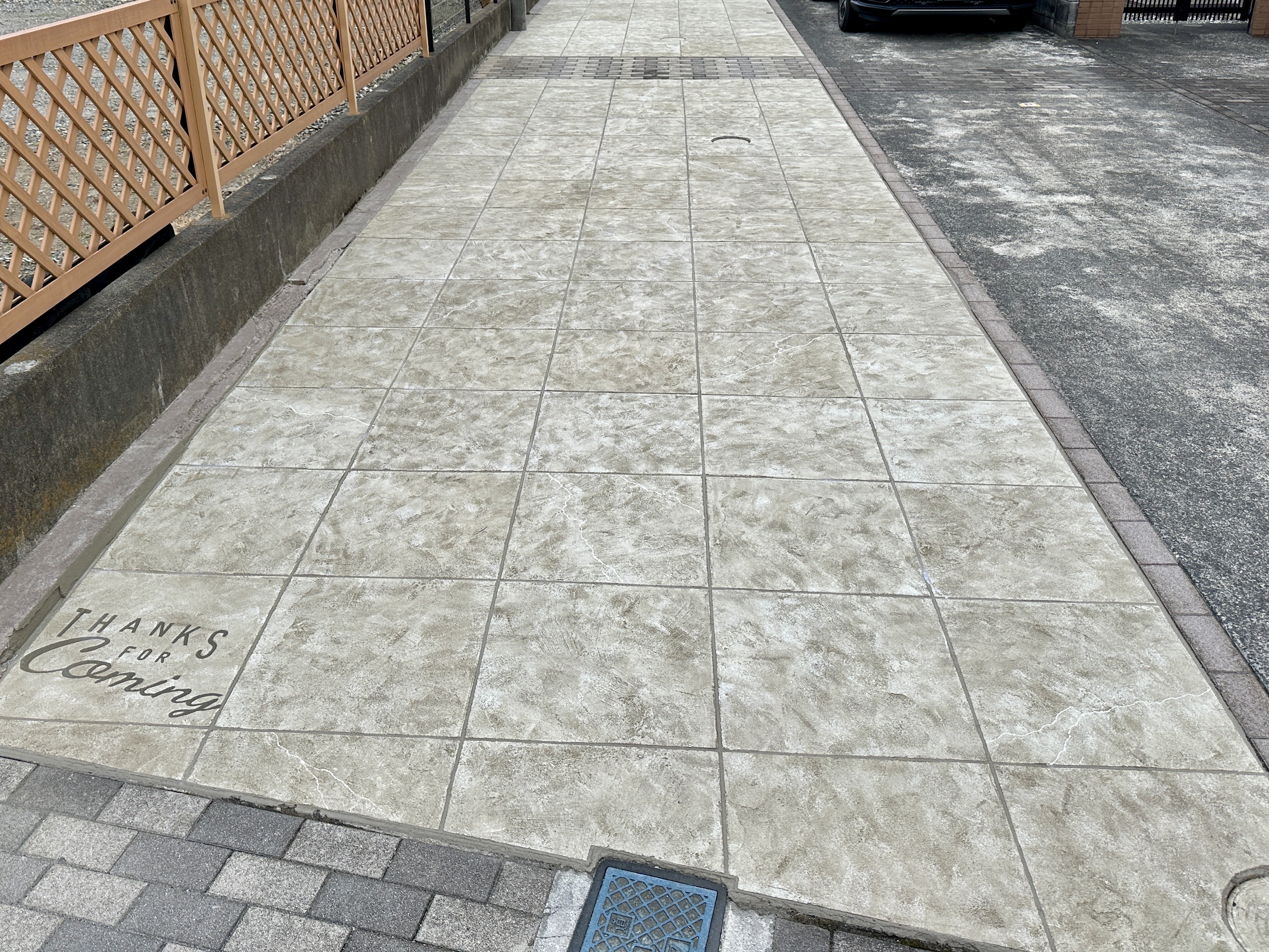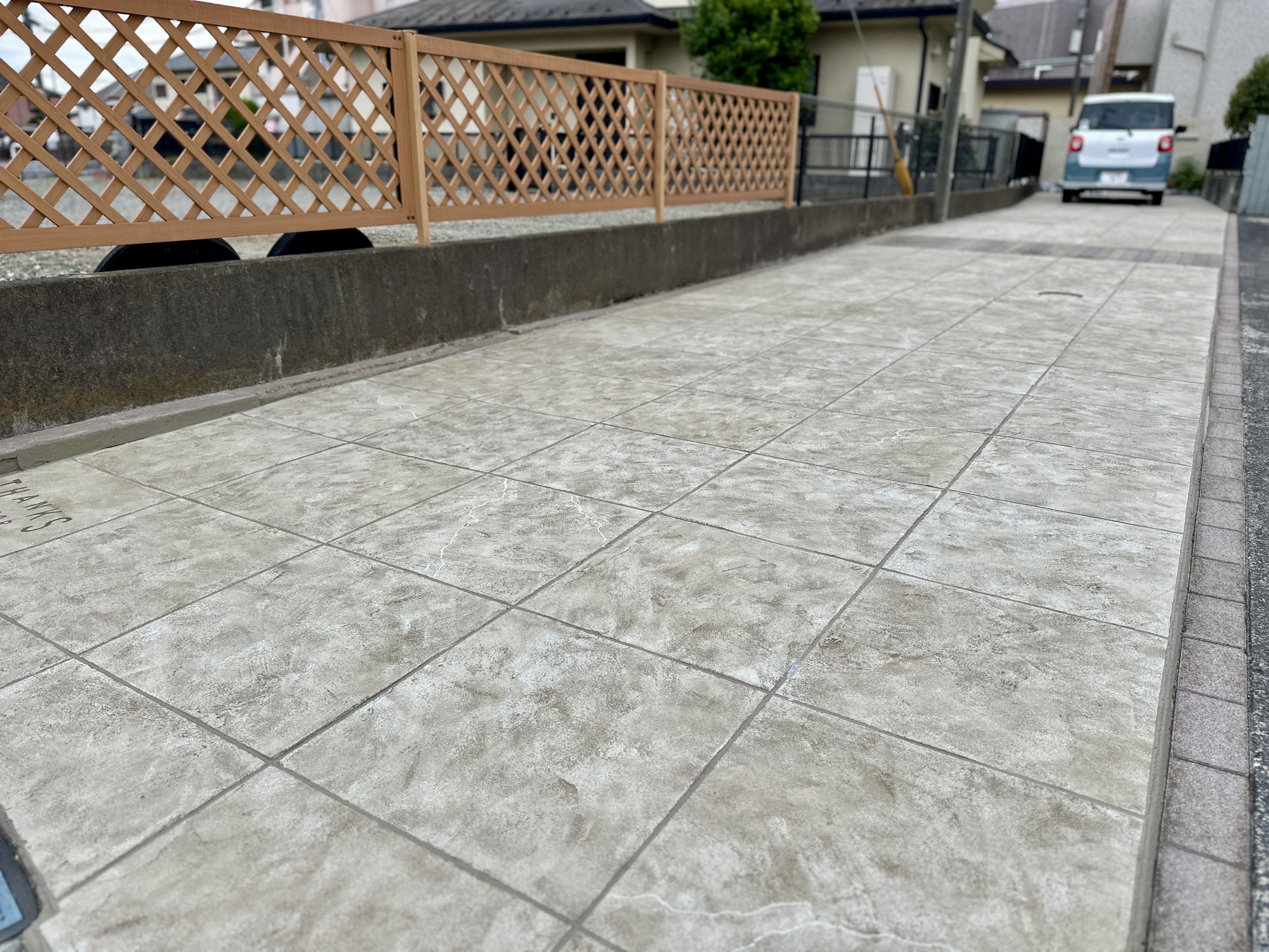 お施主様との打ち合わせの上で、今回は『正方形タイル調』のデザインを施工させて頂きました。