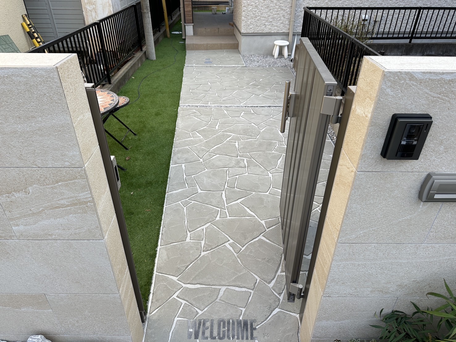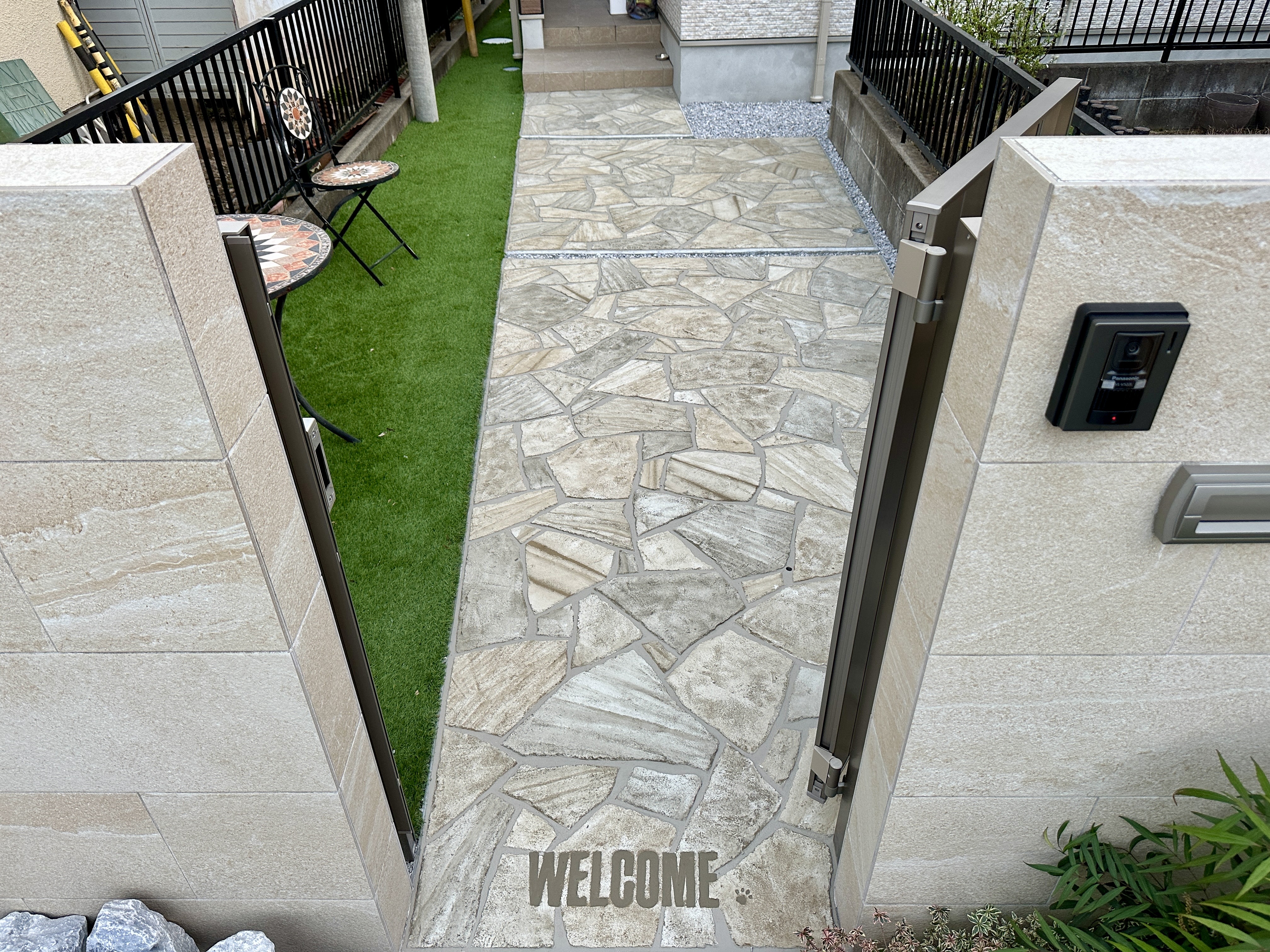 【新築1年目の玄関アプローチをリフォーム!】あきる野市のお客様からのご依頼でローラーストーン!