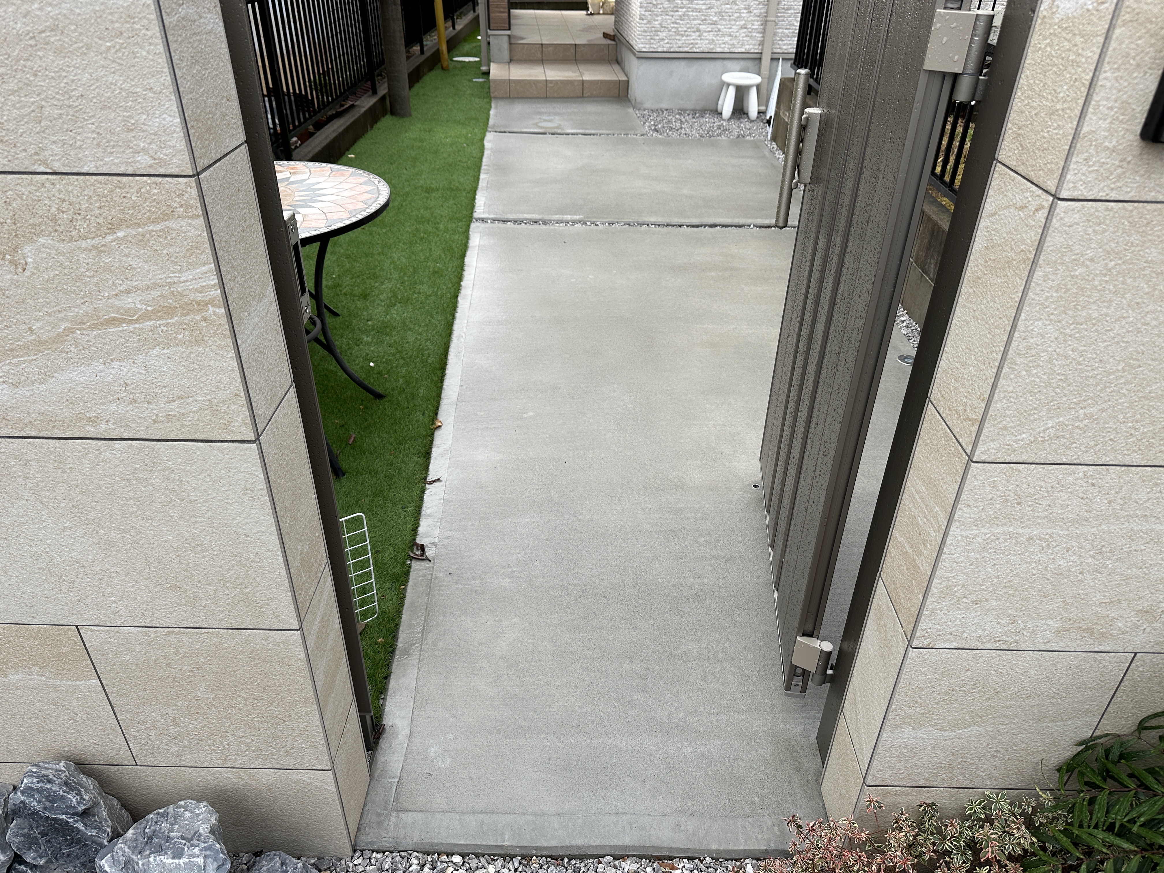 その中の玄関アプローチを現状のコンクリートから、