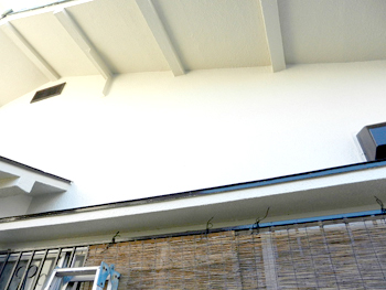 | 2階の外壁の様子です。こちらも綺麗に塗り変わりました。真っ白で清潔感のある印象になりました。 | 普段はあまり見えない部分ですが、細かい所の作業も抜かりはありません。 |