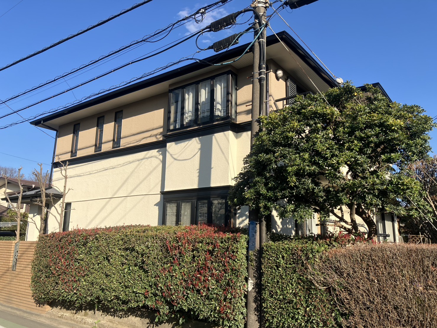 | ツートンカラーで外壁を塗装し、明るくメリハリのある印象に仕上がりました。屋根も落ち着いた色味で塗装し、全体に統一感のある外観となっています。 |