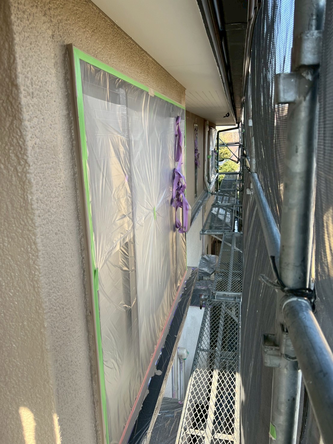 塗装しない部分を保護するため、養生を丁寧に行っています。 細部まで配慮することで、美しい仕上がりを実現します。 |