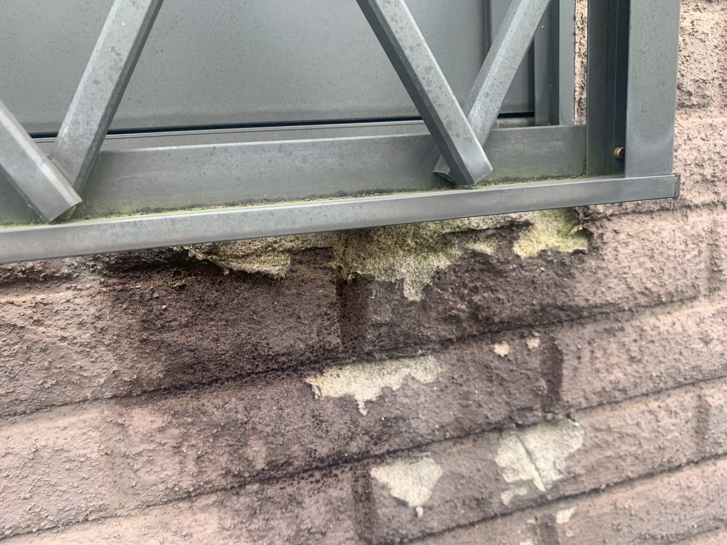 | サッシ下にはロングツタワンDを設置。 雨だれによる汚れの再発防止にもつながる施工となっています。 |