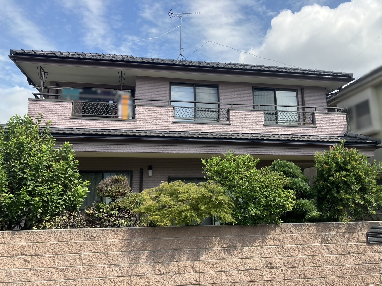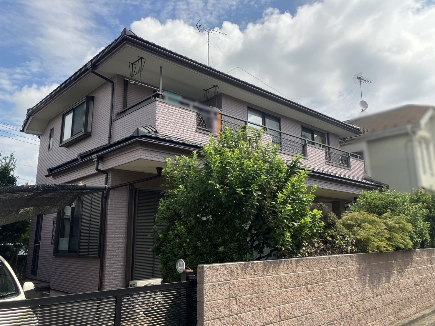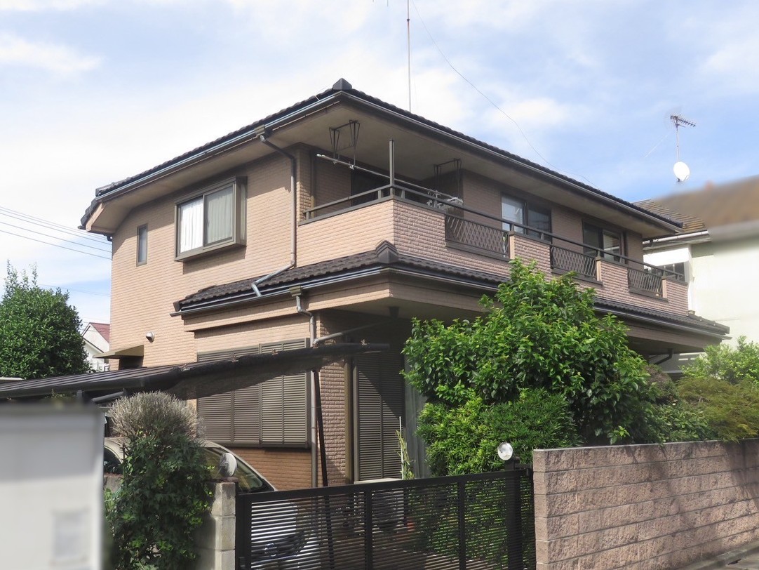 | 施工前の全体写真。 外壁には経年による色あせや劣化が見られ、全体的に古さを感じる状態でした。 |