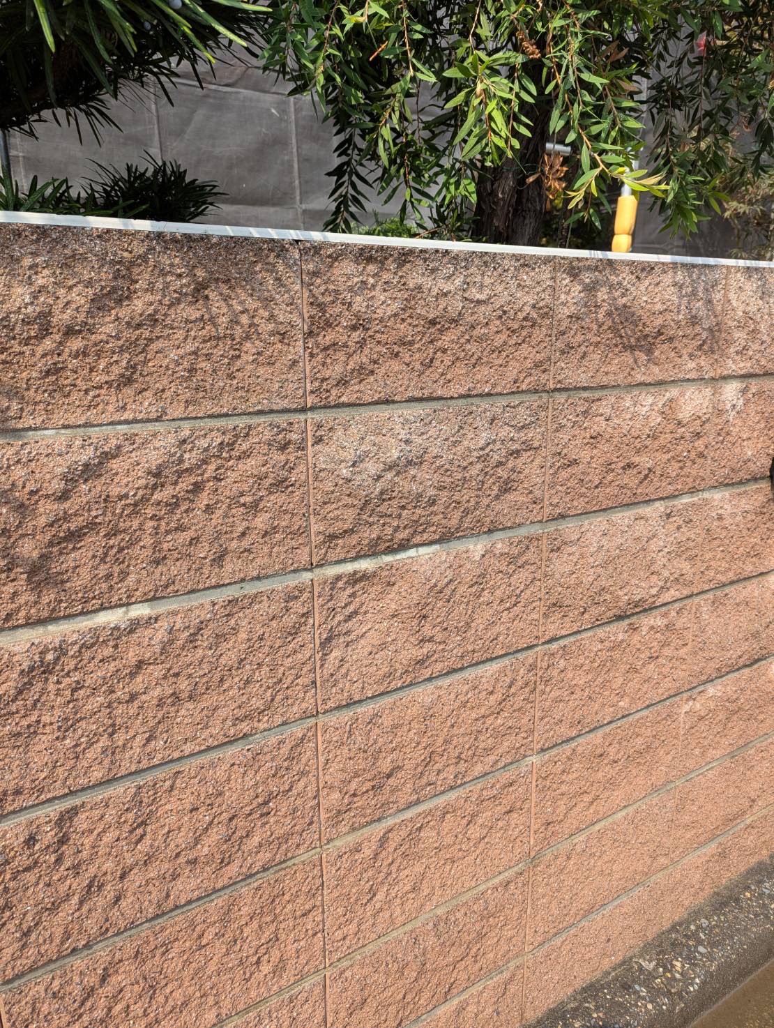 高圧洗浄中。 | 高圧洗浄後。 黒い汚れが落ちているのが確認できます。 |