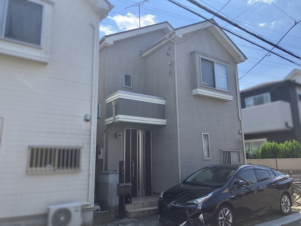 | 施工前の全体写真。 外壁のシーリング部分にひび割れなどの劣化が見られました。 |